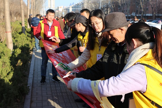 在活动过程中,来自我院的12名青年志愿者与众智社工的工作人员一道为市民发放车用环保袋和挪车卡,并提醒市民车窗抛物行为会严重影响城区市容整洁,同时也会给环卫工人带来诸多不便及安全隐患。广大市民听了志愿者的提醒后纷纷表示赞同,并表示要从自身做起,向车窗抛物行为说再见。活动期间,志愿者们还组织市民在标有“关爱环卫工人,拒绝车窗抛物”横幅上进行签字,进一步扩大了活动的教育意义和宣传效果。