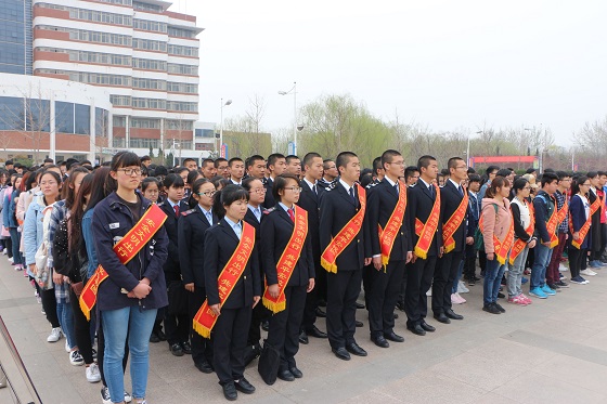 3月20日上午,威廉希尔体育50余名学生在二餐广场参加了由保卫处举办的“安全文明出行,共建平安校园”2017交通安全宣传教育周开幕式活动。