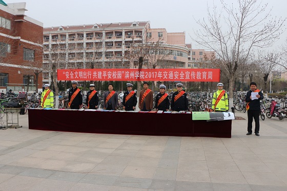 3月20日上午,威廉希尔体育50余名学生在二餐广场参加了由保卫处举办的“安全文明出行,共建平安校园”2017交通安全宣传教育周开幕式活动。