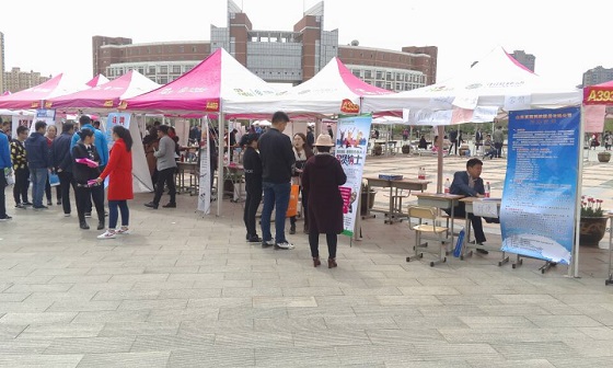 4月9日上午,50多家企业在学校水上广场举办了2017年滨州市“青春扶贫,送岗位进校园”大学生专场招聘会,威廉希尔体育组织该院应届毕业生参加。