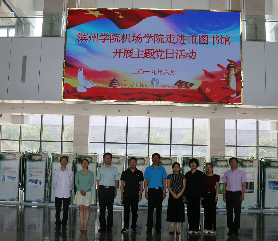 为深入学习宣传贯彻党的十九大精神,加强党员的思想建设,2019年6月4日,滨州学院威廉希尔体育组织党员教师,在学院书记董克勇的带领下,走进滨州市图书馆进行参观学习。