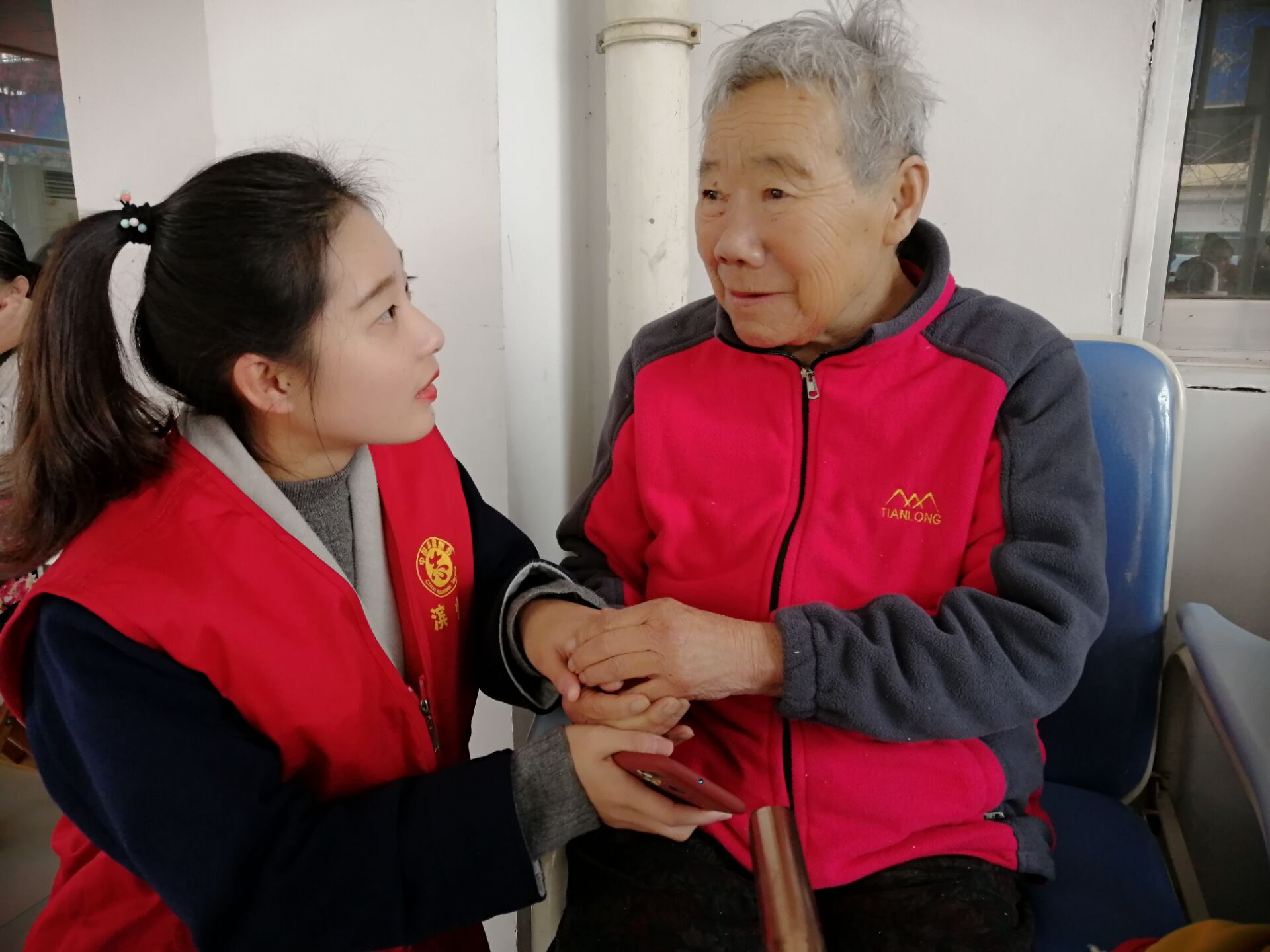 本次志愿服务活动主要包括亲情陪伴和文艺演出两部分。在志愿服务部部长的带领下,同学们顺利抵达张课家敬老院,得知同学们要来的消息后,老人们已经在大厅等候。同学们很自然的坐在老人们中间聊起了家常,听老人们讲起了他们的青葱岁月和近百年来滨州的变化,言语中透露出的都是对当前幸福生活的满足。2019级的同学们还给老人们准备了精彩的节目:歌曲《母亲》让很多人都感动落泪,舞蹈《春江花月夜》和武术操《少年拳》将柔静优美的传统诗词与铿锵有力的传统武术演绎“惟妙惟肖”。同学们的精彩表演结束后,有部分老人自发高歌一曲,将现场的氛围推向了高潮,在场所有人的脸上都露出了幸福的笑容。在场老人非常喜欢同学们的表演,也感受到了同学们温暖的关怀,并欢迎大家能经常到敬老院陪陪老人。