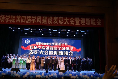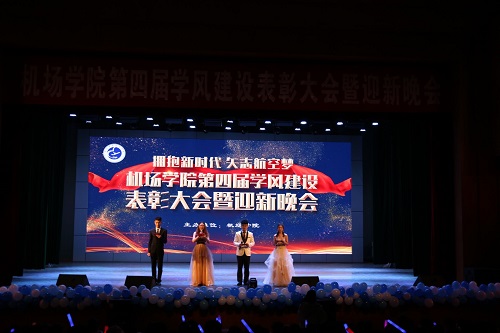 2020年新年到来之际,威廉希尔体育于12月28日晚在学苑会堂举办了主题为“拥抱新时代 矢志航空梦”的第四届学风建设表彰大会暨迎新晚会。学院党政班子成员、全体辅导员班主任和学院全体在校学生参加了活动。