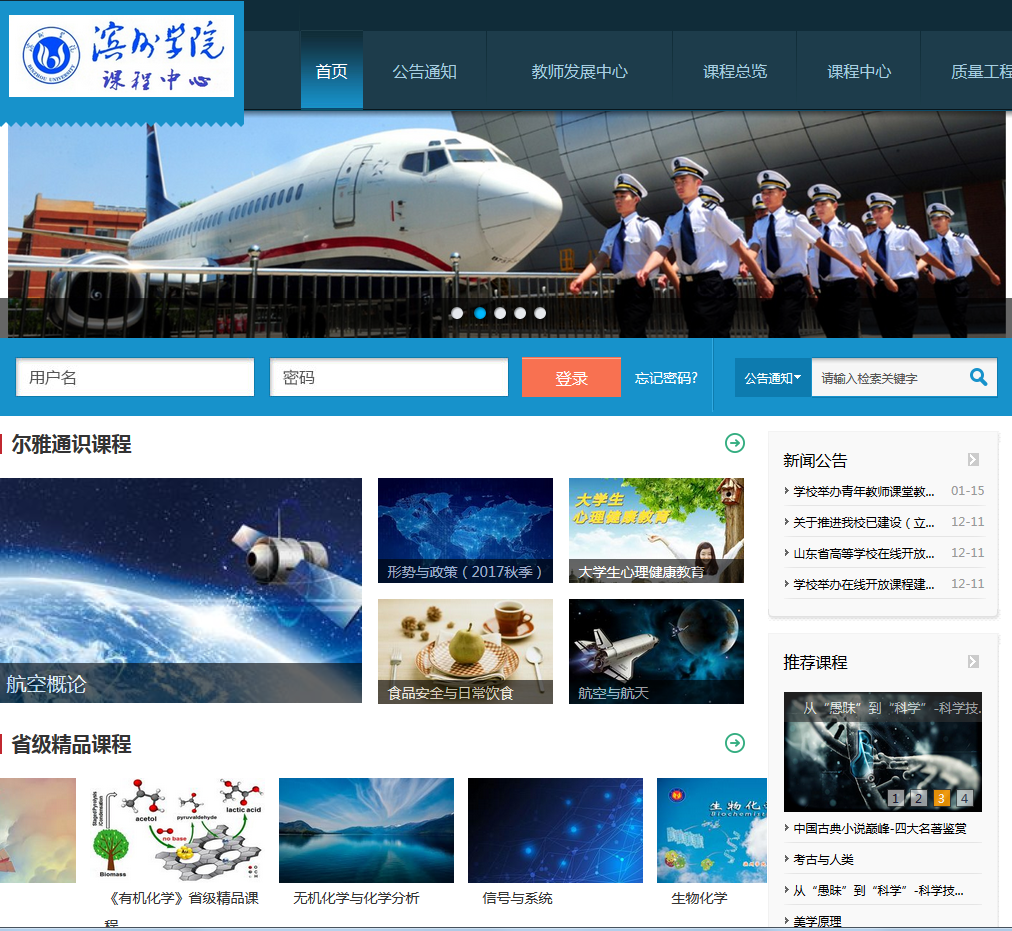 图4滨州学院课程中心平台