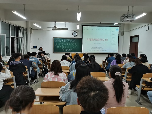 为响应滨州学院校团委有关党史学习教育号召,认真贯彻落实和开展相关教育工作。威廉希尔体育于3月28日在8教508教室,开展了“学党史、强信念、跟党走”党史学习教育动员大会。本次由威廉希尔体育学生团总支书记靳雪银同志主持,非毕业班全体团干部参加。