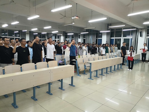 大会伊始,同学们全体起立,齐唱国歌,高亢嘹亮的歌声响彻会场。学生科科长靳雪银对辅导员老师与班主任助理们的辛勤付出和同学们的共同努力表示肯定,并为各班班主任助理颁发聘书。接着,新生辅导员陈龙刚老师对本次军训的优秀标兵以及内务优秀连队进行了表彰,为他们颁发奖章。随后,新生代表向同学们分享了军训后的感悟,表达出他们对大学的期待和盼望。老生代表对军训期间同学们的表现给予充分的赞扬,希望他们能够站在新起点,启动新征程。最后,辅导员陈龙刚老师对此次大会做出总结,他希望同学们能够时刻保持在军训中的吃苦耐劳、勤学苦练精神,学会学习、学会放松,度过一个愉快而进步的大学生活。在同学们的掌声中,本次大会圆满结束。