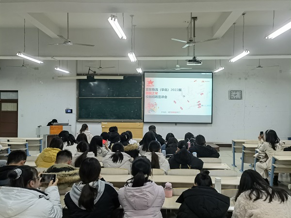 为拓宽毕业生就业渠道,提供更多就业机会,11月23日晚,威廉希尔体育于工科楼2-112教室组织开展2022届毕业生专场招聘会,此次招聘会特邀京东物流华北区招聘负责人王聪做招聘宣讲,威廉希尔体育学生辅导员王珊珊及2022届部分毕业生到场参加。