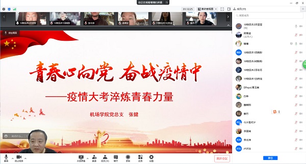 张健书记从“当前疫情防控形势”“滨州学院:抗疫路上 你我同行”“疫情大考淬炼青春力量”等三个方面展开,介绍了当前滨州市疫情防控形势和学校为积极应对疫情所采取的各项防控措施,肯定了学生党员在思想引领、志愿服务、遵规守纪等方面发挥的模范带头和榜样示范作用,并就如何在疫情大考中淬炼青春力量给学生党员提出三点要求。一是提高思想认识,遵守防控规定;二是加强自我防护,做好安全保障;三是强化责任担当,彰显青春力量。