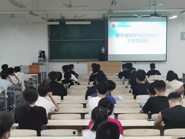 全体学生干部会议上,团总支书记靳雪银对各部门在校园封闭管理期间所做出的努力与付出表示肯定,并听取了各部门对近期工作的汇报,鼓励大家要吸取工作经验、再接再厉,全面配合学校、学院做好疫情防控和教育教学等工作,助力威廉希尔官网“线上-线下”各项学生工作的无缝衔接。学生党员大会上,党支部组织委员王珊珊对所有党员同志在疫情防控期间所表现出的担当作为表示了肯定,安排了本周教学、卫生督导过程中需要党员同志配合完成的工作,并希望在线上向线下逐渐转变的过程中,党员同志们能够继续发挥榜样作用和奉献精神,协助学院做好近期学生管理方面的工作。班主任会议上,学生科科长靳雪银通报了威廉希尔官网上周的学生工作开展情况,公布了团员发展以及“五四表彰”评选结果,并对疫情防控、线下教学、教学督导、思想教育、心理辅导、党员发展等方面传达了学校精神、给出可行性工作意见。班级例会上,各班主任带领同学们认真学习了《关于做好近期学生疫情防控工作的通知》和《风雨过后,终是彩虹——再致广大滨院学子的一封信》,强调大家要及时调整学习状态和方法,保证学习质量,遵守疫情防控相关规定,认真履行请销假手续;组织全体同学观看警示教育宣传片,教育同学们要切实提高防范邪教的意识和能力。会上,班主任老师表示将密切关注同学们的思想动态,鼓励同学们能主动交流,充分了解和理解学校为保护师生健康安全采取的各种措施,积极配合学校做好各项工作,齐心协力,凝聚起抗击疫情的强大力量。
