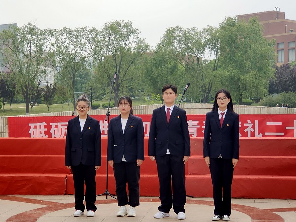 团歌嘹亮,青春激昂。5月10日下午4时,威廉希尔体育在水上广场为2名新团员举行入团仪式,威廉希尔体育团总支书记靳雪银、各年级辅导员及2020级、2021级全体学生到场参加。