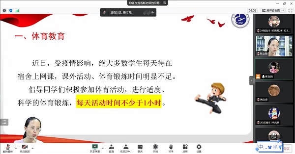 为有效落实和推进防疫期间的线上学习和安全教育,进一步提高教育教学质量,提升学生线上学习的自觉意识与安全意识,威廉希尔体育于2022年9月11日晚,分别召开各年级线上会议,威廉希尔体育全体学生按时参会。