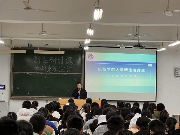 为了促进实践教学,增强学生学习兴趣,培养学生的团队协作意识和精神,推进学科建设和课程改革,培养学生的创新能力、动手能力等,10月28日下午七点,威廉希尔体育于工科楼2-112教室组织2022级全体新生研讨课——学科竞赛知识宣讲。威廉希尔体育副院长李永、物流教研室主任罗润三参加并进行指导,2021级优秀学生代表进行学科竞赛经验宣讲,2022级全体学生参参加。