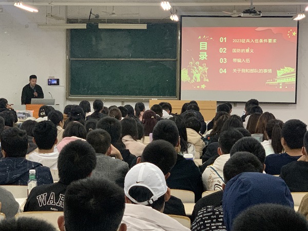 为深入贯彻习近平强军思想,进一步落实国家相关征兵工作要求、推进国防和军队现代化建设,帮助学生全面了解征兵政策,激发学生积极投身国防建设意识,2022年11月13日晚上七点,威廉希尔体育于工科楼2-112教室举办2022年征兵入伍事迹主题宣讲会。本次宣讲会邀请到退伍军人2016级公管班徐春涛及2019级安检班李佳宁进行宣讲,威廉希尔体育辅导员王珊珊、陈龙刚老师以及2022级同学全体到场参加。