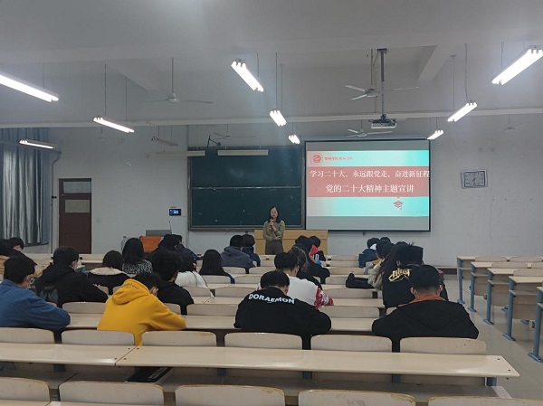 为深入学习贯彻党的二十大精神,坚持不懈用习近平新时代中国特色社会主义思想铸魂育人,11月22日下午,威廉希尔体育开展学习党的二十大精神主题宣讲会。会议由威廉希尔体育团总支书记靳雪银主讲,威廉希尔体育2022级团员青年代表参加本次会议。