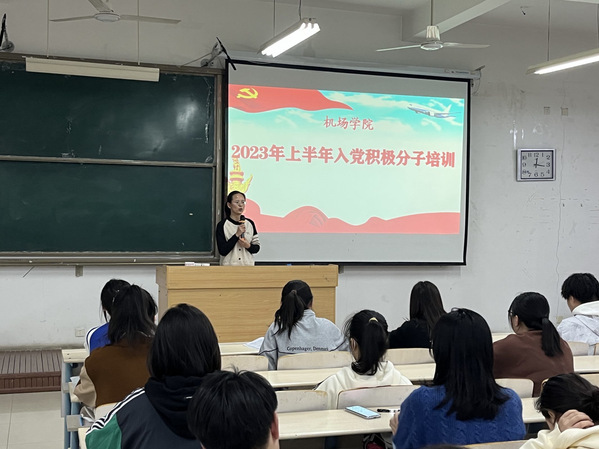 培训伊始,靳老师首先向同学们讲解了党员发展的基本流程,同时帮助同学们深入了解党员发展基本知识,为提前成为优秀党员做好准备。随后,靳老师对《中国共产党章程》及党的二十大报告做了详细讲解帮助同学们系统学习了党的基本知识与理论,强调同学们要牢记中国共产党的性质和指导思想,明确中国共产党的初心使命和行动指南,自觉履行党员义务以及如何做好党的好青年等,端正入党动机,更加积极地向党组织靠拢。最后,靳老师要求同学们要认真学习党的有关知识内容,做好巩固复习,严肃对待接下来的入党积极分子考试,并且在日常生活工作中积极发挥先锋模范作用,为早日成为一名光荣的中国共产党员奠定思想基础