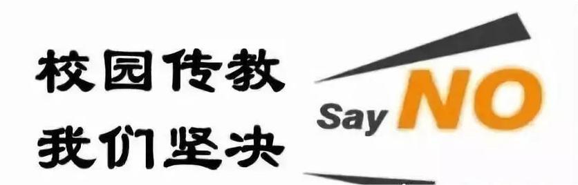高校不是宗教场所,严禁非法传教、举办宗教活动。如果有人在校园内传播某某教义、宣称只要加入他们的组织就可以得到利益、保平安,而且行动诡秘、使用暗号等,就要警惕小心、不能轻信。