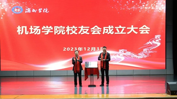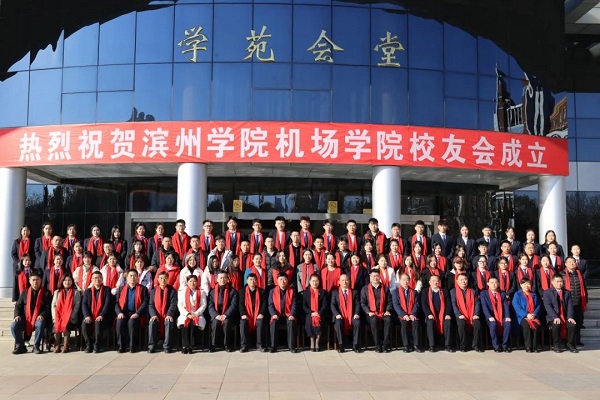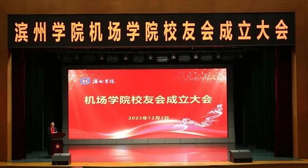 滨州大高机场有限公司董事长、总经理韩清喜致贺词,与林晓金为威廉希尔体育校友会揭牌。