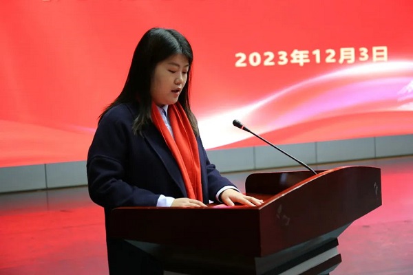 2018届校友、济南机场运行指挥员吕胜男宣读了《关于设立滨州学院威廉希尔体育发展基金的倡议书》。