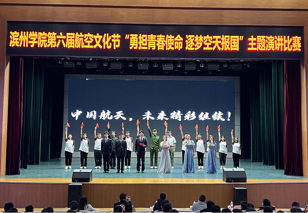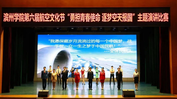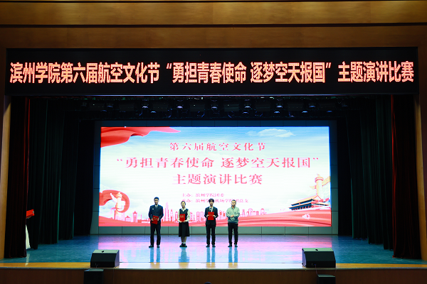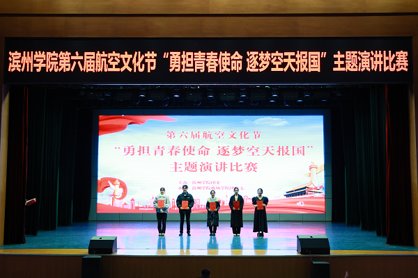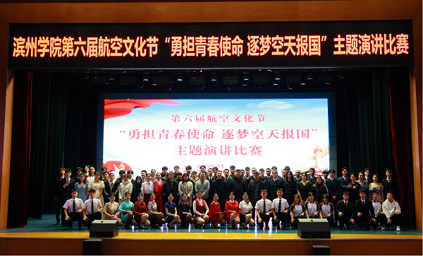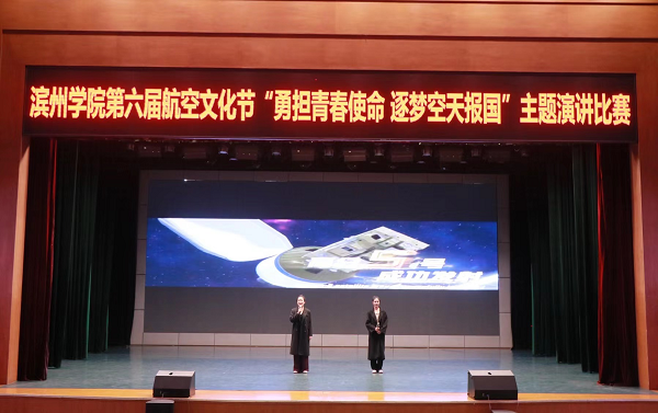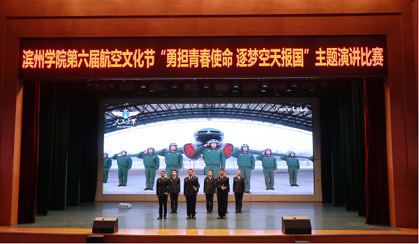 12月11日,由校团委主办、威廉希尔体育团总支承办的第六届航空文化节“勇担青春使命 逐梦空天报国”主题演讲比赛决赛在学苑会堂成功举办。本次比赛邀请中国文化信息协会文化产业专业委员会特聘会员程锐、滨州学院办公室副主任李文胜、学生工作处副处长李华、发展规划处副处长谢攀担任评委,校团委副书记张立强、威廉希尔体育党总支副书记刘法堂以及二级学院部分辅导员老师出席本次活动,共有十个学院代表队参赛。