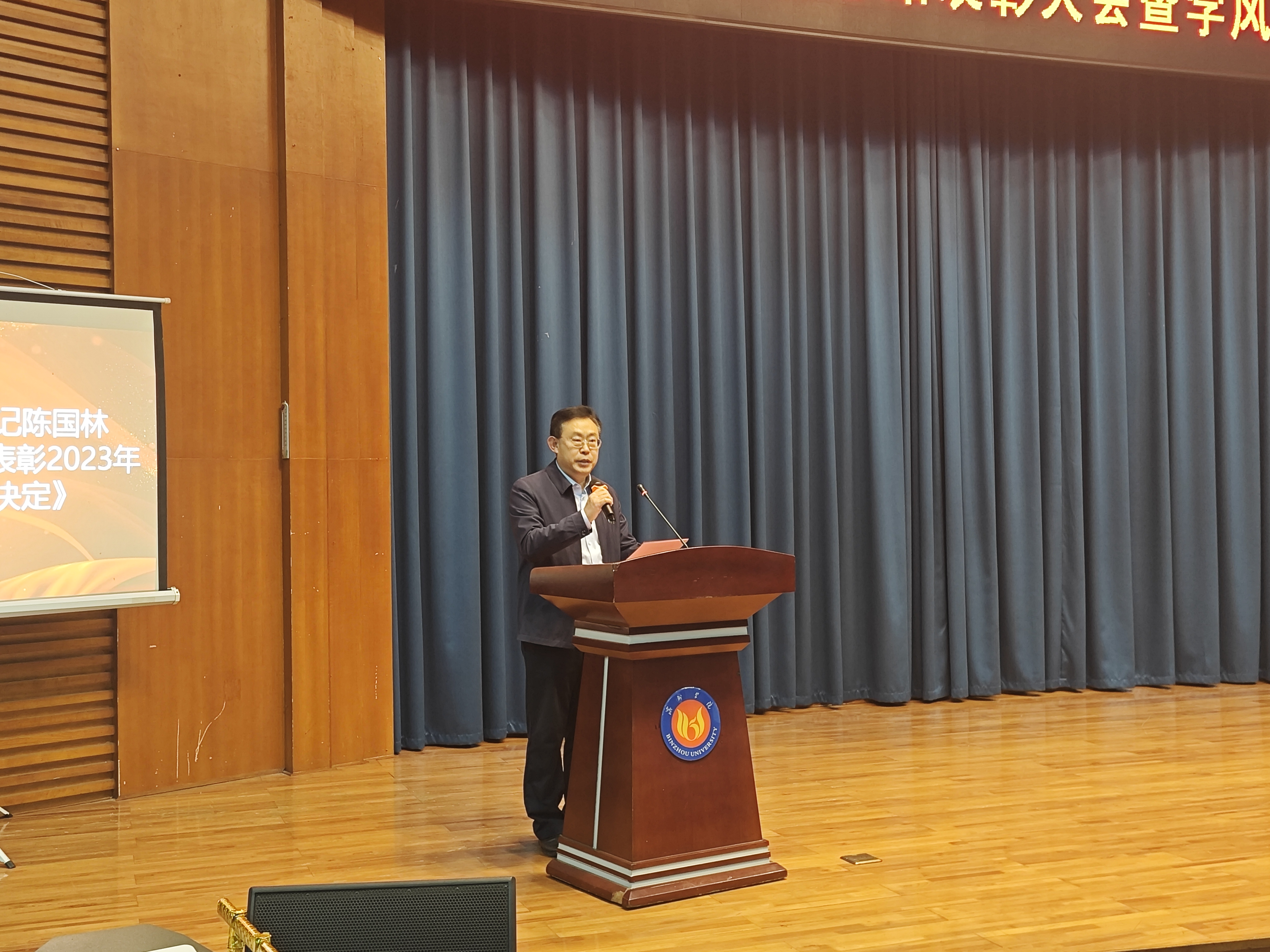 在热烈的掌声中,学校党委委员、纪委书记、监察专员李继峰,教务处处长、机电工程学院院长章健,科研处处长、黄河三角洲生态环境研究中心常务副主任、生物与环境工程学院副院长夏江宝分别为“威廉希尔体育 2023 年度工作先进典型”颁奖。学院党总支书记陈国林宣读《威廉希尔体育关于表彰2023年度工作先进典型的决定》,授予陈永军等 10 名同志“2023 年度工作先进典型”称号,希望全体教师以先进典型为榜样,积极工作、克服困难、勇于创新,为学院各项事业发展作出新的更大贡献。“优秀教研室主任”“教研标兵”刘伟波作为获奖教师代表发言,他用“机遇”“认同”“努力”三个关键词分享了自己的工作心得和获奖感受,号召全体教师爱岗敬业、坚持不懈、攻坚克难,把不可能的事情做成,把可能的事情做成无限可能。