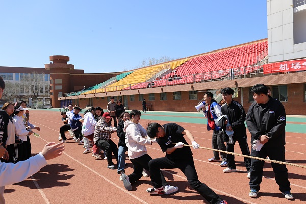 本次运动会共设15个比赛项目,融竞技性和趣味性于一体,既是速度与力量的角逐,又是智慧与合作的较量,各项赛事在工作人员的精心安排下紧张有序地开展。蔚蓝的天空下,是机场学子奔跑矫健、青春昂扬的步伐,热闹的操场上,是健儿们摩拳擦掌、永不言弃的身影。赛场上,跑步运动员身姿矫健,如同狂风中的闪电,轻盈地穿越在人群中,破风而行;跳远运动员双臂挥舞助力,身体张弛有度,轻巧起跳,稳稳落地;铅球运动员奋力一掷,在弧线划过的片刻,目光炯炯,欢呼阵阵;老师们全身心投入“摸石头过河”“足出精彩”“金箸夹球”等趣味项目中,尽情释放自己的激情,享受运动的快乐。拔河现场,加油声、呐喊声、喝彩声响成一片,师生对抗赛将运动会气氛推向高潮。