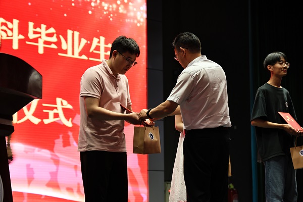 学院领导党总支书记陈国林、院长韩春艳、副书记刘法堂分别为优秀毕业生代表佩戴毕业徽章,希望全体毕业生能够初心不改,笃行致远,希望全体在校生们能以优秀的师哥师姐为榜样,薪火相传,砥砺前行。