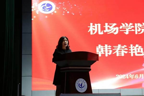 院长韩春艳代表学院全体教职员工向圆满完成学业的毕业生们表示最热烈的祝贺。她高度肯定了同学们过去四年的辛勤努力和所取得的优异成绩,指出同学们带着梦想来到山航院这片热土,在师生、朋友的帮助下不断变得睿智、坚定、乐观、坚强,是学校最活跃的主人,也是学院发展最重要的成果。在即将离别之际,她以师长、学长的身份深情寄语2024届全体毕业生:一要珍惜当下,二要珍惜他人,三要珍惜自己,四要珍惜梦想,珍惜该珍惜的,把握该把握的,品尝生命的乐趣,追求幸福的人生。她希望同学们能继续传承和弘扬“脚踏实地,心系蓝天”的学院精神,做有理想、敢担当、能吃苦、肯奋斗的新时代青年,用实际行动书写自己的青春华章。