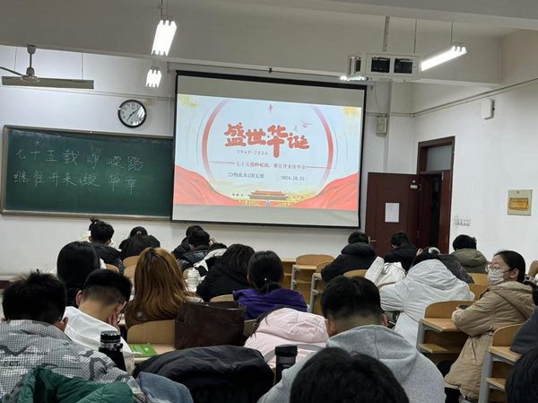 23物流本1团支部于2024年10月17日在9教502举办了以“七十五载峥嵘路,继往开来续华章”为主题的团日活动。团支部书记通过视频及图片讲解,使同学们深刻了解了我国七十五周年以来取得的成就和飞速发展。团支部成员踊跃发言,讲述自己家乡的红色发展故事,让其他成员意识到身边榜样的力量。同学们不仅深刻认识到自己肩负的历史使命和社会责任,并立志今后更加努力学习专业知识,提升综合素质,为祖国繁荣富强贡献自己的力量。24交工本1团支部于2024年10月17日在8教506举办了以“七十五载峥嵘路,继往开来续华章”为主题的团日活动。团支部书记通过引领观看爱国视频,讲解红色故事,激发了团员们的爱国热情、民族自豪感和责任感,引导团员们在新时代担当使命,为祖国建设贡献青春力量。24交工本2团支部于2024年10月15日在8教507举办了以“七十五载峥嵘路,继往开来续华章”为主题的团日活动。通过展现75年变迁的文学作品,从乡村振兴到城市的现代化建设,书中的内容如画卷般展开,让同学们对祖国的热爱更加深沉。大家探究了祖国大好河山在这75年里的开发与保护。生态环境的改善措施、资源的合理利用,这些知识让同学们明白祖国可持续发展的重要意义。24物流本1团支部于2024年10月15日在8教307举办了以“七十五载峥嵘路,继往开来续华章”为主题的团日活动。团支部书记通过文献资料搜集和讲解,激发了同学们的爱国热情,同学们表示:我们也将继续为世界和平与发展贡献中国智慧和中国力量,与各国人民携手共进,创造更加美好的未来。24物流本2团支部于2024年10月25日在8教510举办了以“七十五载峥嵘路,继往开来续华章”为主题的团日活动。团支部书记通过带领同学们回顾峥嵘岁月、分析当代挑战与机遇、讲解继往开来战略规划等形式,弘扬了核心价值观,强化了历史使命感。同时使大家认识到社会稳定、民族团结,为各项事业发展奠定了坚实基础。同学们表示:我们将继续坚持中国特色社会主义道路,不断深化改革、扩大开放,推动经济高质量发展,为祖国的发展添砖加瓦。