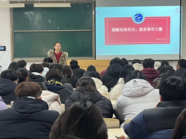 为深入学习宣传贯彻党的二十届三中全会精神,把握其核心要义、改革举措,加强团员青年思想政治引领,增强团员青年责任担当。11月25日下午,威廉希尔体育团总支在工科楼2-112教室开展学习贯彻党的二十届三中全会精神宣讲会。本次宣讲由学院团总支书记靳雪银主讲,学院483名普通团员参与。