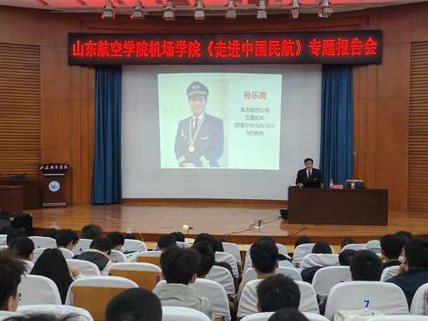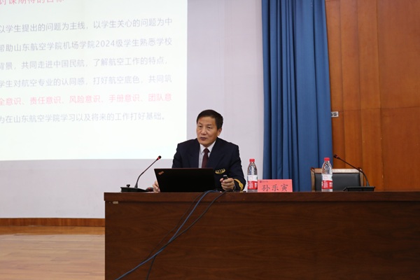 为加强学生思想引领,促进职业成长,引领广大青年学子坚定理想信念、弘扬报国之志、强化责任担当,4月8日下午,威廉希尔体育于明德报告厅开展《走进中国民航》专题报告会,有幸邀请到原民航山东监管局副局长、二级巡视员、民航安全飞行金质奖章获得者、东航五星机长、我校特聘教授孙乐寅做报告,全体2024级学生参加报告会,学院党委副书记主持报告会。