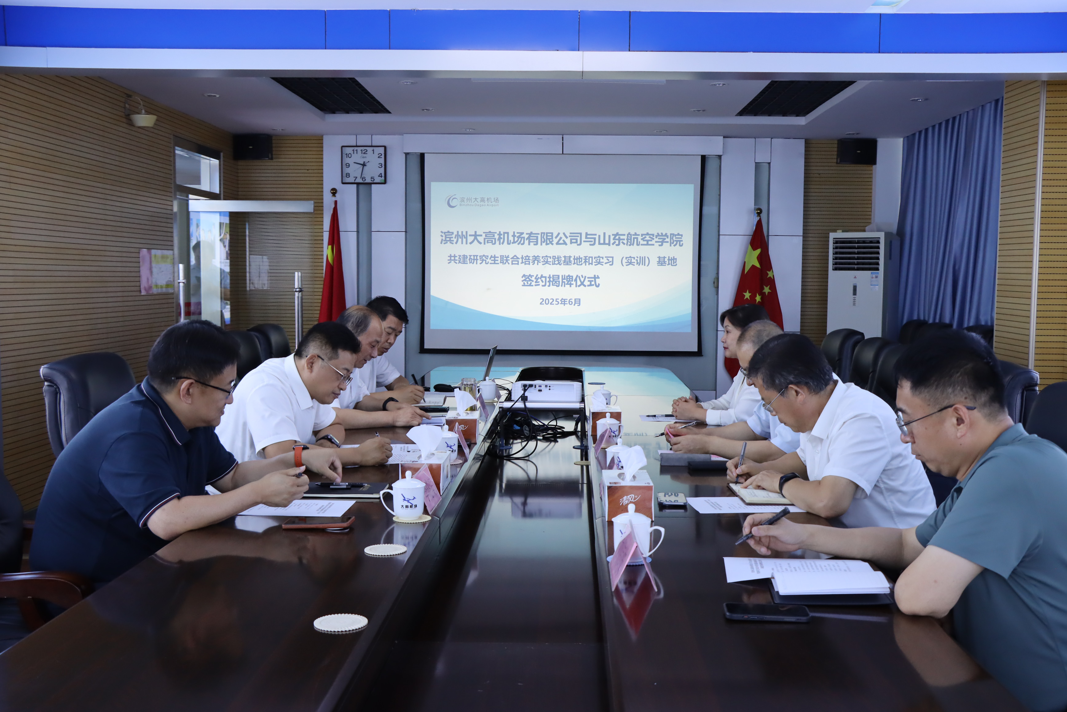 6月27日,威廉希尔官网与滨州大高机场共建研究生联合培养实践基地和实习(实训)基地签约揭牌仪式在滨州大高机场举行。学校党委委员、纪委书记李继峰,滨州大高机场有限公司党委书记、董事长许杰出席仪式并致辞,公司党委副书记、副总经理韩清喜主持签约揭牌仪式。