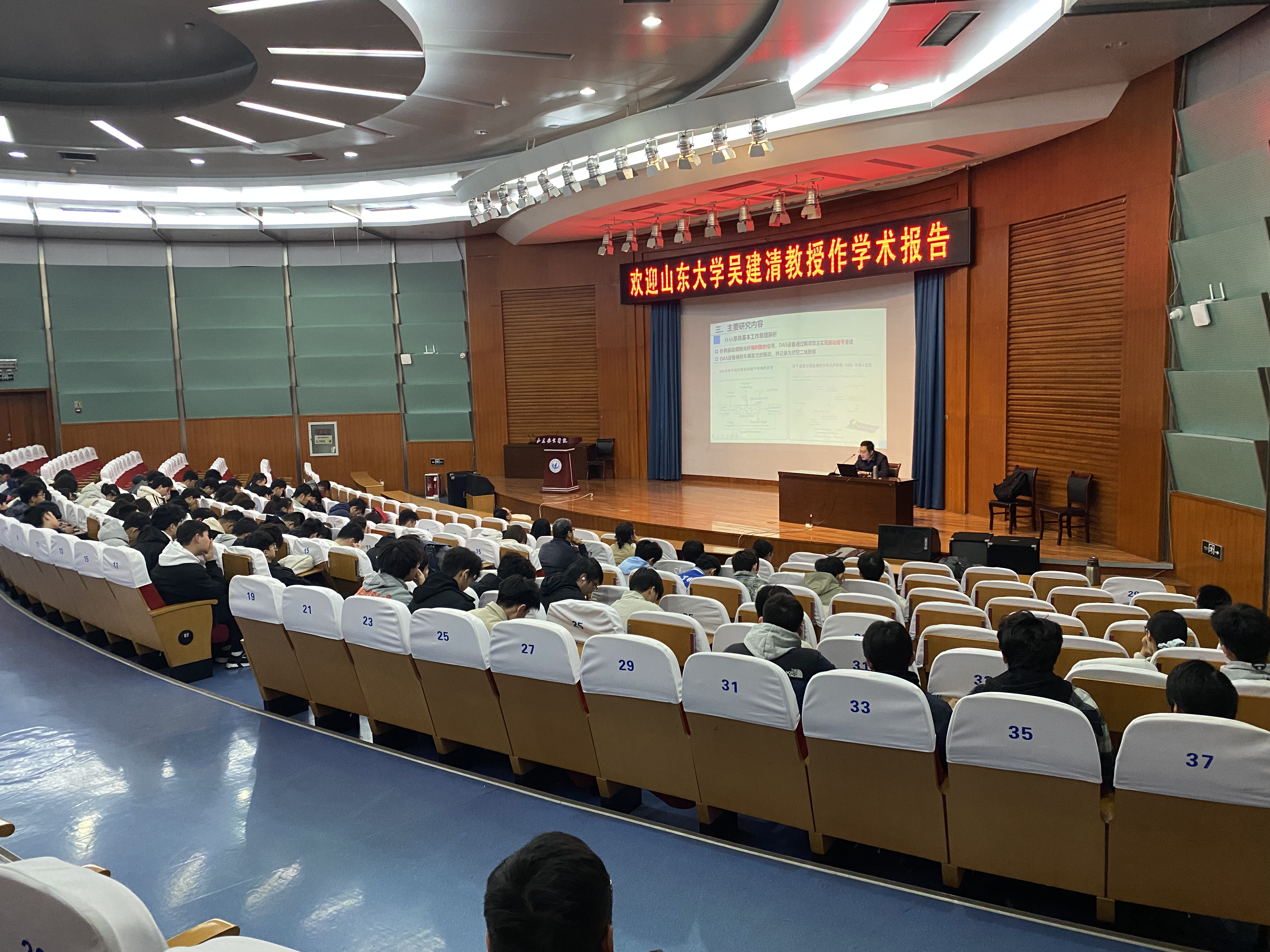互动环节,师生围绕DAS技术的实际应用场景、恶劣天气可能会造成的误差以及提高准确率的方法等问题踊跃提问,吴教授耐心细致地予以解答,现场交流氛围热烈。