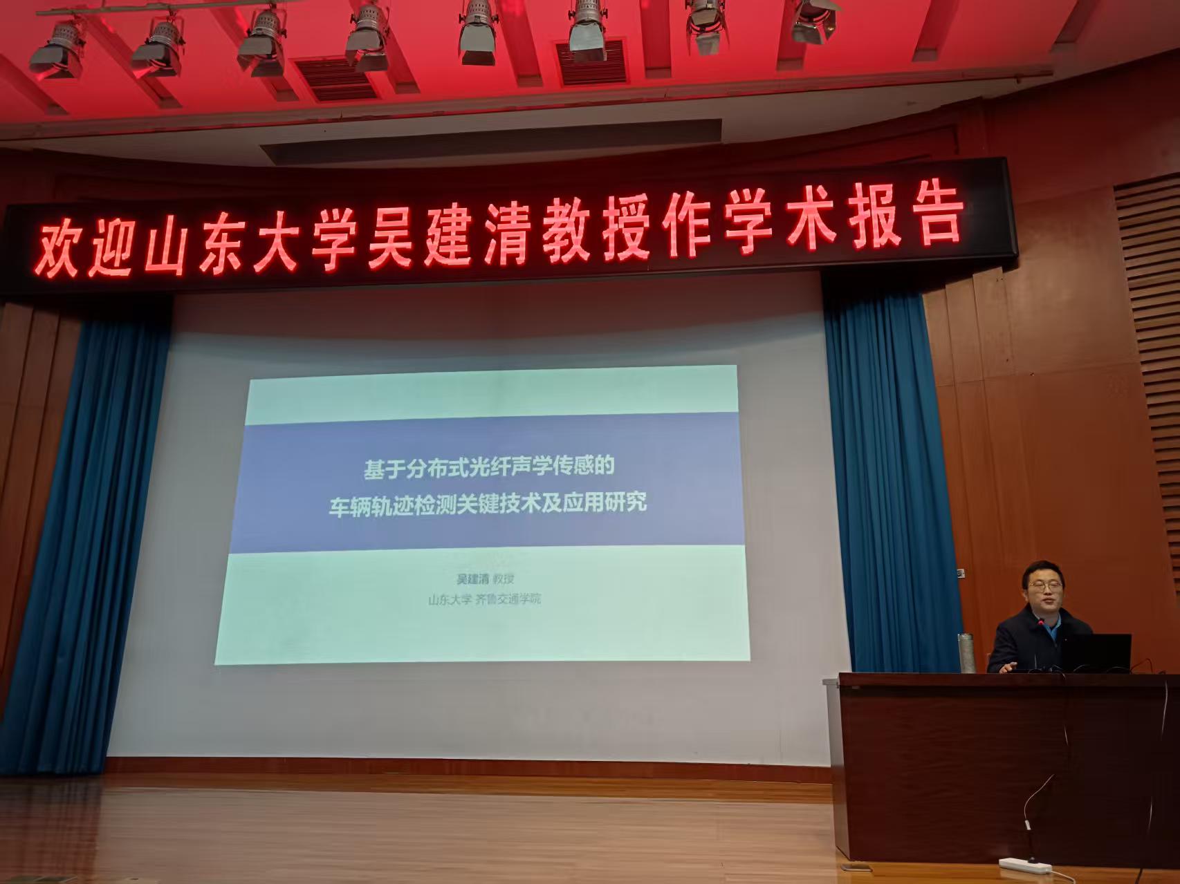 10月20日上午,山东大学齐鲁交通学院吴建清教授应邀来威廉希尔官网作学术报告,报告题目为《基于分布式光纤声学传感的车辆轨迹检测关键技术及应用研究》,报告会由科研秘书王荣娟老师主持,学院科研骨干教师、研究生和本科生参加了报告会。